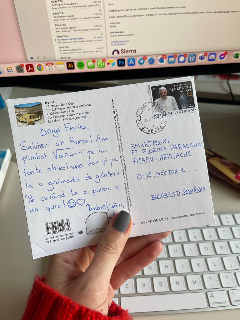 09:33 daca vreti sa mi trimiteti chestii, mai jos adresa ( in plus, cat de adorabil e sa primesti postcard)
