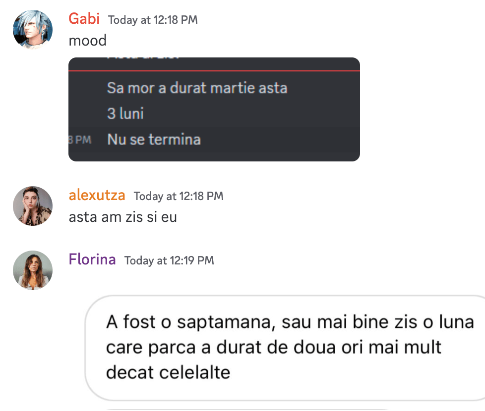 19:54 am 3 spre 4 oameni suparati azi pe mine. se mai ofera cineva? cred ca am o aura foarte productiva pe latura asta