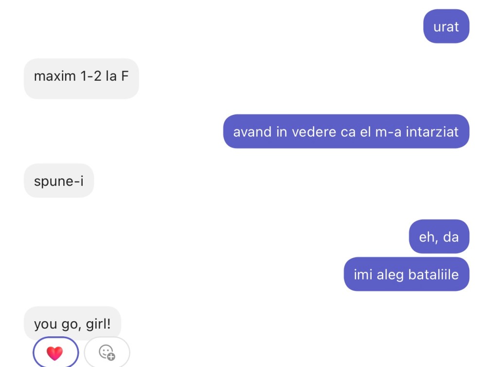 #1229 Flo Uncategorized August 3, 2023August 4, 2023 1 Minute 14:32 ia uite, s-a facut ora doi 17:13 cum denumește Bogdan fișierele 18:15 asta e work related, da? 18:17 si ootd Share this: Share on X (Opens in new window) X Share on Facebook (Opens in new window) Facebook Like Loading... Published by Flo View all posts by Flo Published August 3, 2023August 4, 2023