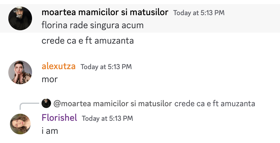 17:16 moartea mămicilor crede ca eu nu sunt amuzanta