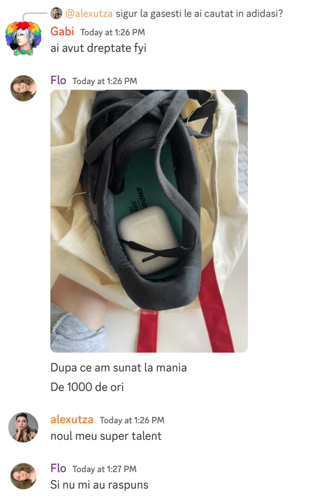 09:40 astazi nu am început bine. da, nu am rămas blocată în lift, insa nu mi găsesc căștile, aștept sa se facă 11 sa sun la mania, florile s-au ofilit, gabi a ajuns înaintea mea la birou si nu a mai trecut pe nicăieri sa ia ceva pentru micul dejun, nici cu Q1 nu mă mândresc, iar pentru prânz am doar jumătate de porție de mâncare…