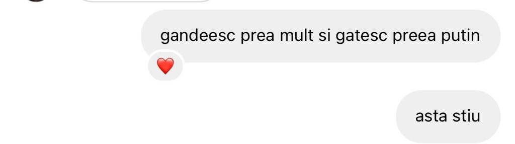 15:04 in lista cercurilor vicioase din care fac parte, mai adaug unul – sunt mai mereu obosita si nu pot functiona asa cum mi-as dori, insa pe de alta parte incerc sa ma obosesc ca sa pot dormi noaptea.