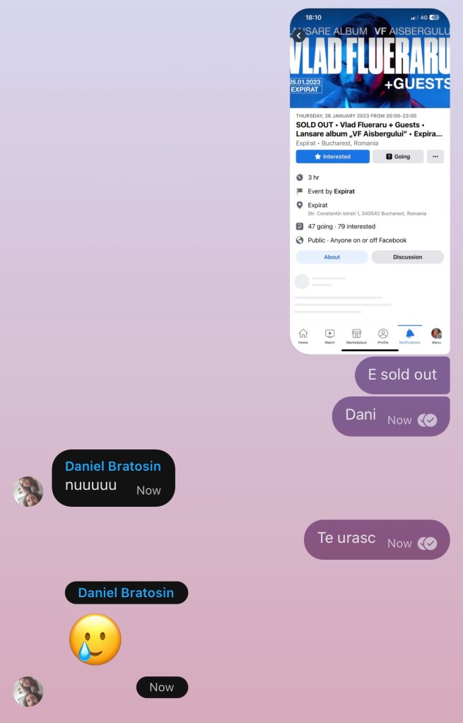09:08 sunt o fata simpla, asa ca visul meu din noaptea asta a fost despre cum mi-am uitat acasa manusile pentru box, ceea ce mult timp la inceput a fost chiar o realitate, m-am straduit sa nu le mai uit, am reusit in cele din urma, faptul ca am visat asta a fost practic un fel de cosmar, m-am uitat, ce-i drept, de doua ori inainte sa plec de acasa in geanta sa vad daca le-am pus