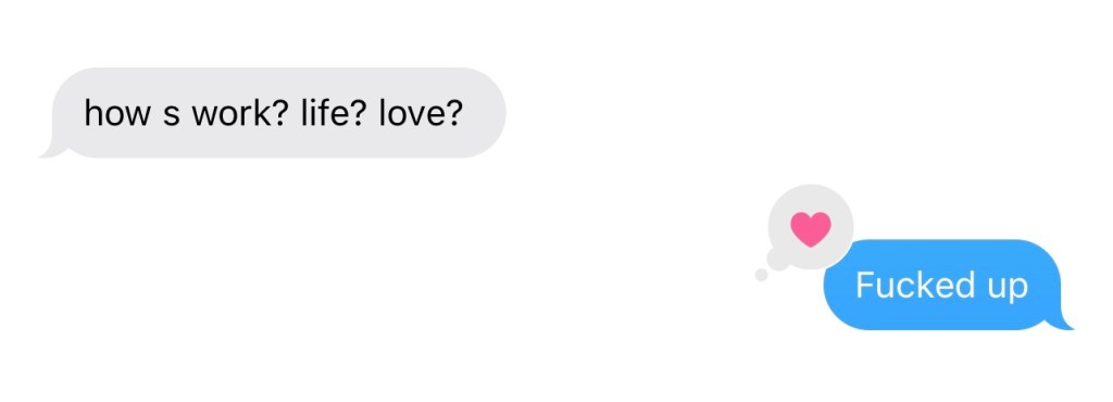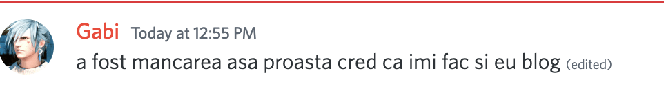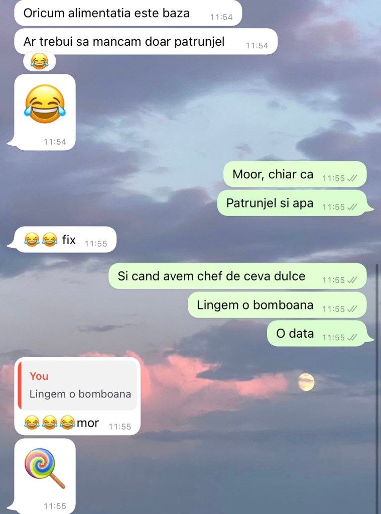 12:34 va jur ca e un tip la coada la auchan, sunt in spatele lui, deci ii vad ecranul telefonului, si a trimis un mesaj care incepea cu “tot adevarul inimii mele…” si inca vreo 5 randuri, nu ma judecati, practic mi-a aruncat mesajul in fata, ma plictiseam asteptand, el cu marimea fontului la maxim, cu ecranul asa.. dat pe spate, ma mir ca nu a ajuns la mine mesajul