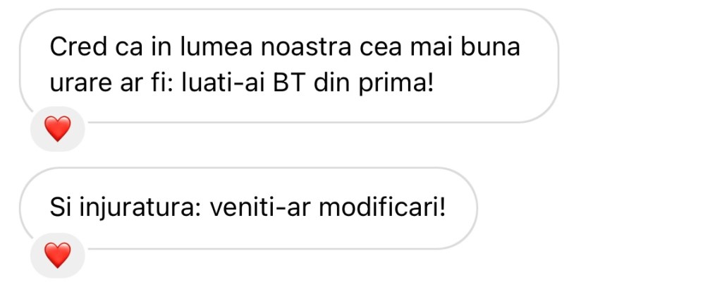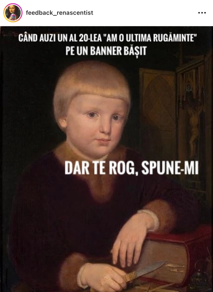 21:56 scriu o chestie despre cum functioneaza creierul meu: sambata am vrut sa pun o poza pe stories pe instagram, am vrut sa fac o chestie dinaia cu “afis/promovare” cu link catre aici. Doar ca nu mi iesea lipeala. Pentru ca linkul nu se micsora destul de mult incat meshul pe care il acopeream sa ramana totusi vizibil, asa ca nu am pus. Astazi, in 2 secunde de blank total intr-o discutie la masa cu ai mei zic, bai, dar de ce nu am marit poza in the first place? Si se marea si mesh ul si linkul meu ar fi picat tocmai bine. I ll do that. Out of nowhere. Daca va intrebati de ce mi-a luat 3 zile sa ajung la rezolvarea asta, ei bine, pentru ca am avut si alte lucruri de gandit si in plus, poza era incadrata perfect, problema era la mesh, acum nu mai e asa ok, dar macar se vede linkul ok. Uite despre ce vorbesc