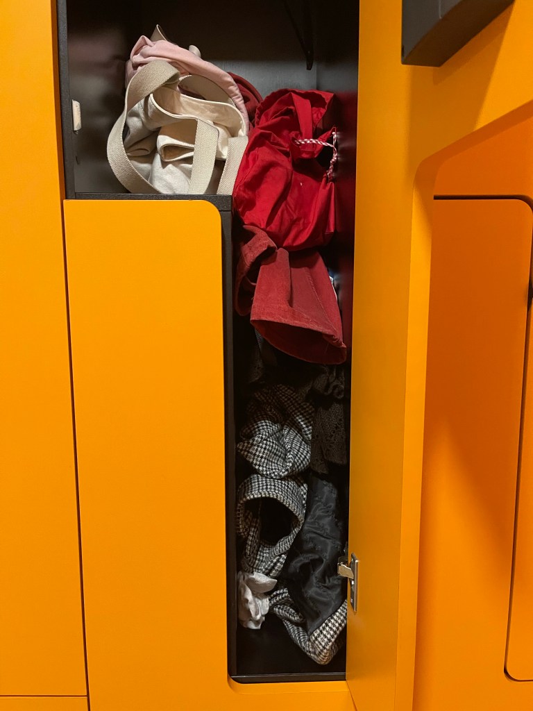 22:05 ma gandeam, dupa ce am vazut cum mi am pus hainele in vestiar, daca tot am doua carduri de acces, de inchis vestiare, de ce sa nu impart lucrurile de mai jos in 2?