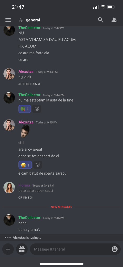 21:11 nu stiu daca e de la toamna, desi cred ca e de la toamna, trebuie sa fie, altfel de la ce e, dar nu mai am energie. Ma scuzati pentru momentul de slabiciune, revin cu un banc