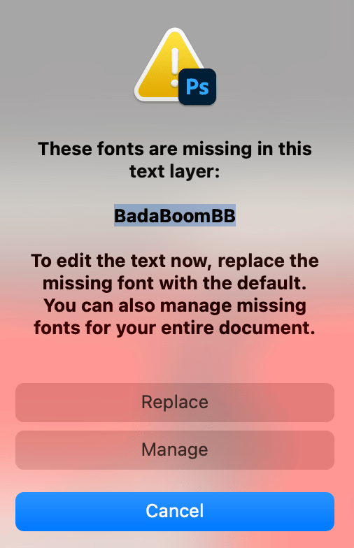 17:54 una din vestile bune de astazi, mici dar bune, spre foarte bune de fapt, este faptul ca atunci cand trebuie sa inlocuiesc un font in illustrator, si nu vreau sa l inlocuiesc ci sa il donwloadez pot lua cu copy paste din casuta asta de avertizare ca nu am fontul de fapt. made my day – asta de mai jos este un exemplu de nume de font pe care il pot tine minte usurel, dar am unele mai rele