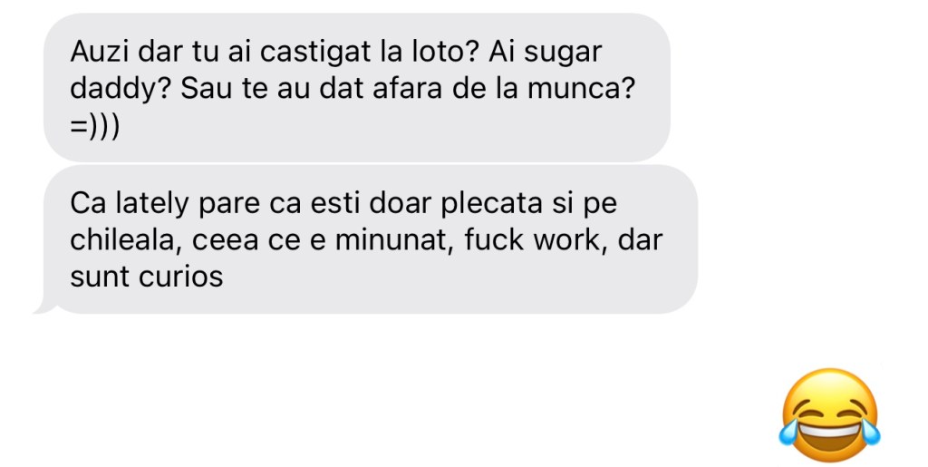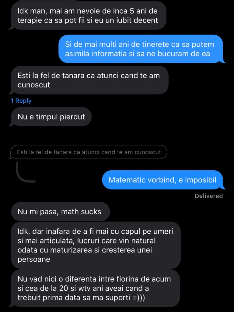 21:55 cand eram in dus la sala la promenada, azi dupa spinning, ma gandeam cum capul ala de dus nu distribuie apa cum trebuie si nu reusesc sa mi claresc parul cum trebuie. Si ca da, ar trebui sa evit ultima cabina de dus ca sa mi faca viata mai usoara. Si apoi m-am gandit ca la caro pe partea stanga de dusuri e presiunea mica la apa. Si ca pe tazz sa platesc cu cardul libra ca am 10% reducere, ca lunea trebuie sa mi pun manusile in geanta de sala, ca trebuie sa ajung putin mai devreme sa prind sac, ca martea e bataie la spinning la bogdan si trebuie sa fac rezervarea la timp si ca mintea mea acum le aduna si le imparte, dar cand intru la dus dupa ora aia care ma epuizeaza, cand ma trezesc dimineata buimaca, cand plec in graba de la munca, mai uit din toate notitele astea puse pe partea dreapta a creierului
