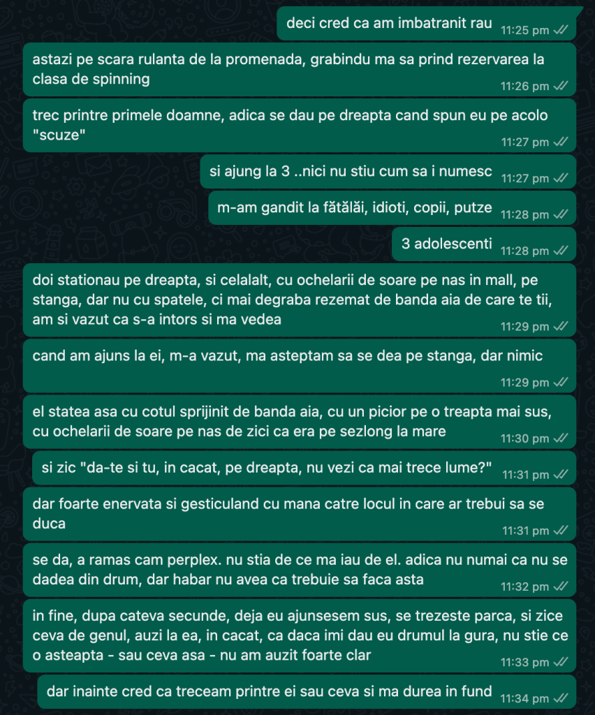 15:35 imi place in vama. Dar imi place in maxim 4 locuri. Cumva reusesc sa ignor restul lucrurilor care nu imi plac si care sunt multe. Like cocalarii de mamaia care parcheaza ca idiotii.