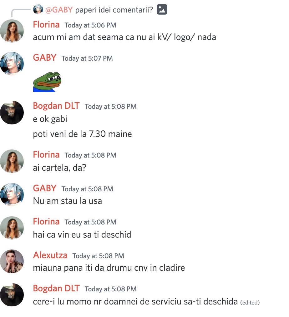 15:43 pun pe discord borcanele nutella de primvara din 2023 – sa le vada si colegii mei. Bogdan: adica sunt din viitor?