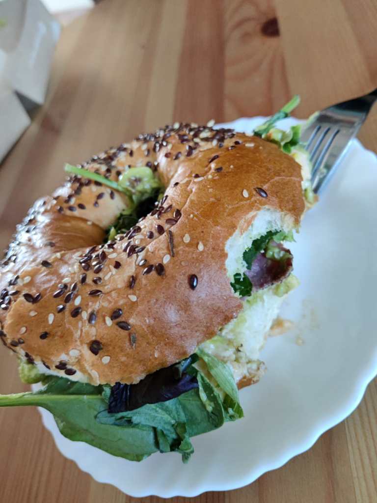 astazi SUPA DUPA by Vlad Dobrescu. Bagel cu ombleta = bagel cu paine. Avocado bun, insa. Bogdan & Gabi, burrito rece – m-am uitat in el, au pus toatea alea la blender si apoi le-au pus in lipie, supa crema de legume in lipie. Gabi: mai bine imi luam bagel.