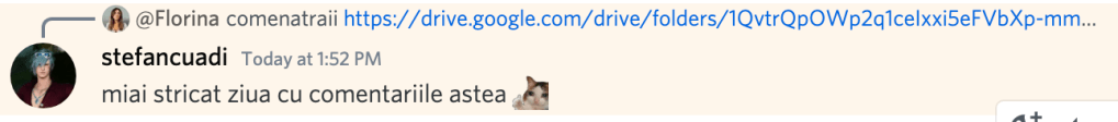 08:54 nu e nici noua si eu sunt la munca. e a doua zi deja cand se intampla asta anul asta. ce se intampla cu mine, Florina, revino-ti, dormi pana la 8 jumate cel putin.