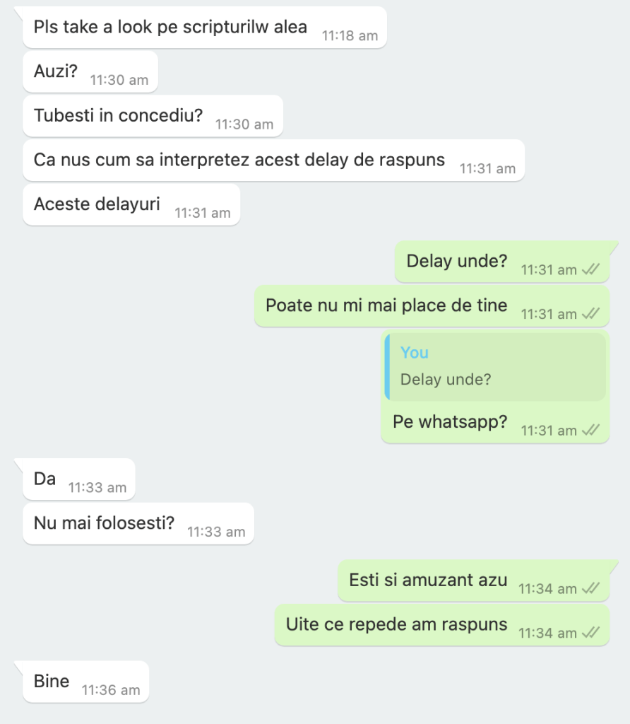 15:57 zic mereu ca nu mai comand chestii de pe site-uri gen sneaker studio si totusi ma regasesc in postura de a cauta informatii despre retur & co. doamne, cand vor ajunge toti la nivelul eMAG & Fashion days? cand vom inceta sa chemam curierul, sa platim retur la sume destul de mari si sa primim banii inapoi dupa 14 zile?!?!