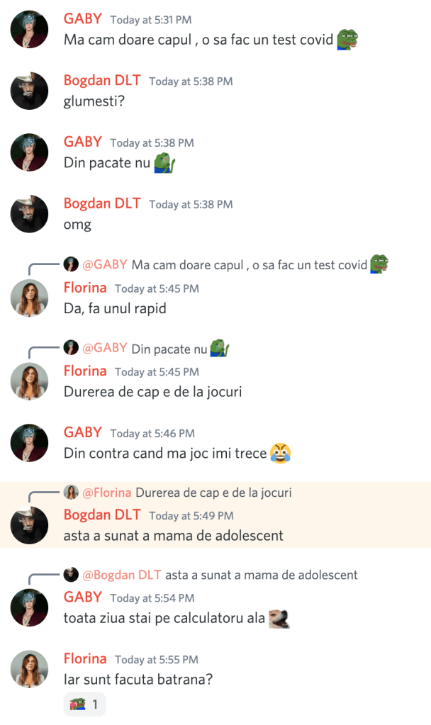 19:05 gabi a intervenit cu o informatie foarte utila in conversatia in curs