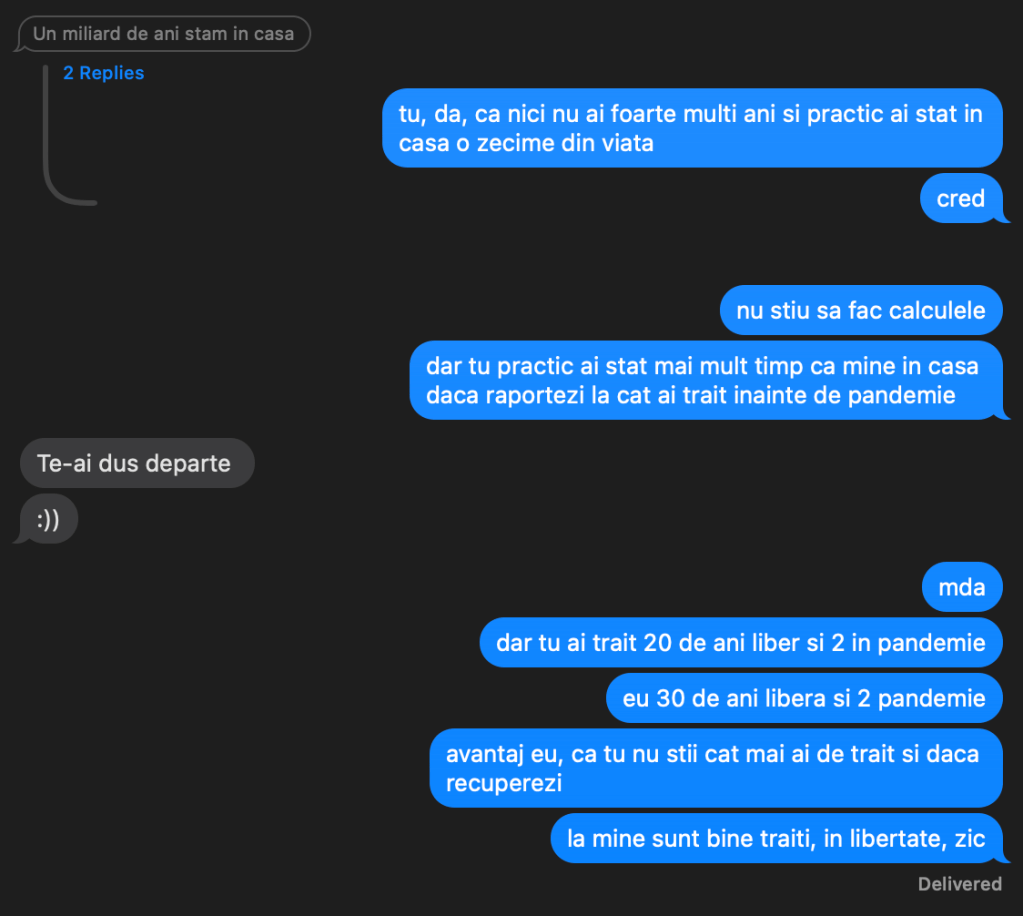 20:26 astazi am lasat un comentariu pe facebook, am primit ai like-uri, viata e frumoasa.