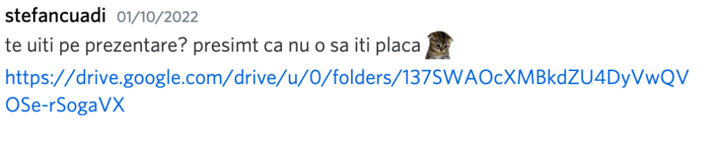 16:37 a zis Gabi ceva amuzant mai devreme, am vrut sa notez pe blog, dar aveam o urgenta, nu am notat, acum am intrebat in birou daca isi aduce aminte cineva ce a zis, bineinteles ca nu, am ajuns la concluzia ca ne inregistram all day long si editam, Gabi, sa facem un podcast amuzant.