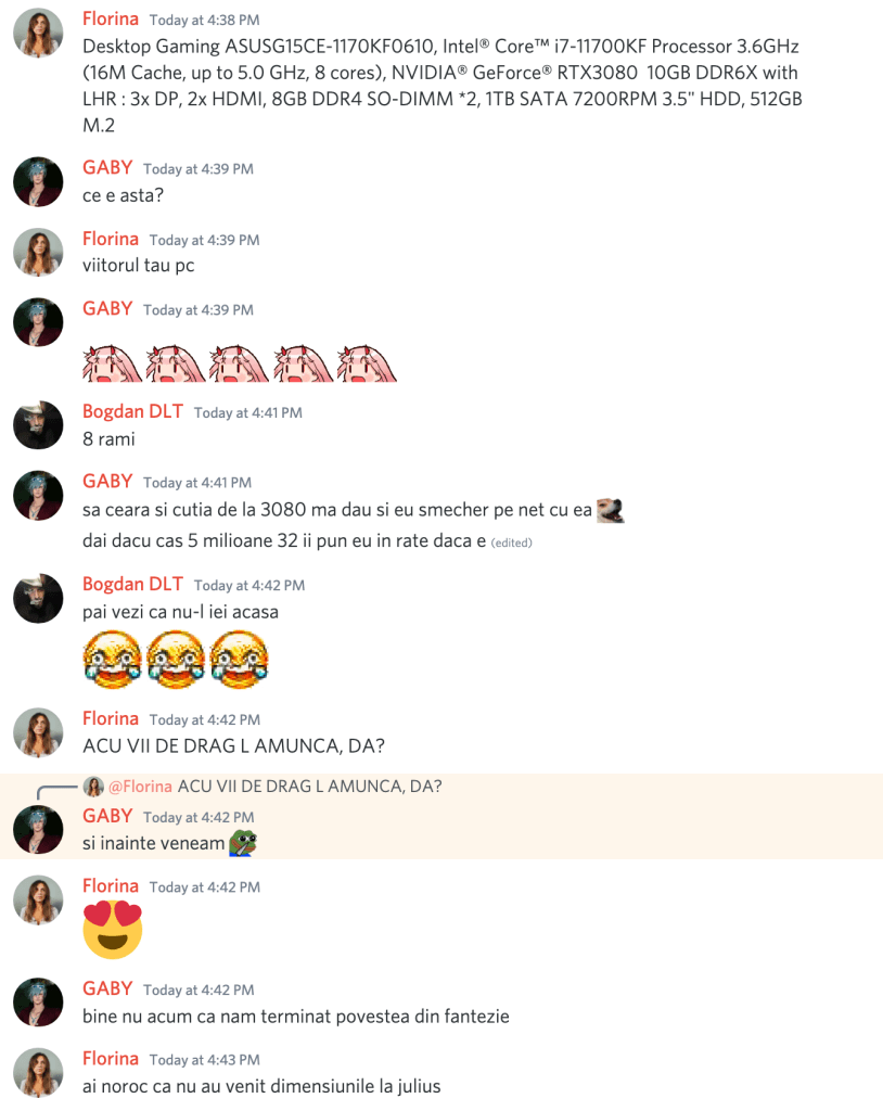 14:12 Gabi si Bogdan nu cred ce am povestit mai sus, adica ei nu cred ca eu mint, dar nici ca spun adevarul