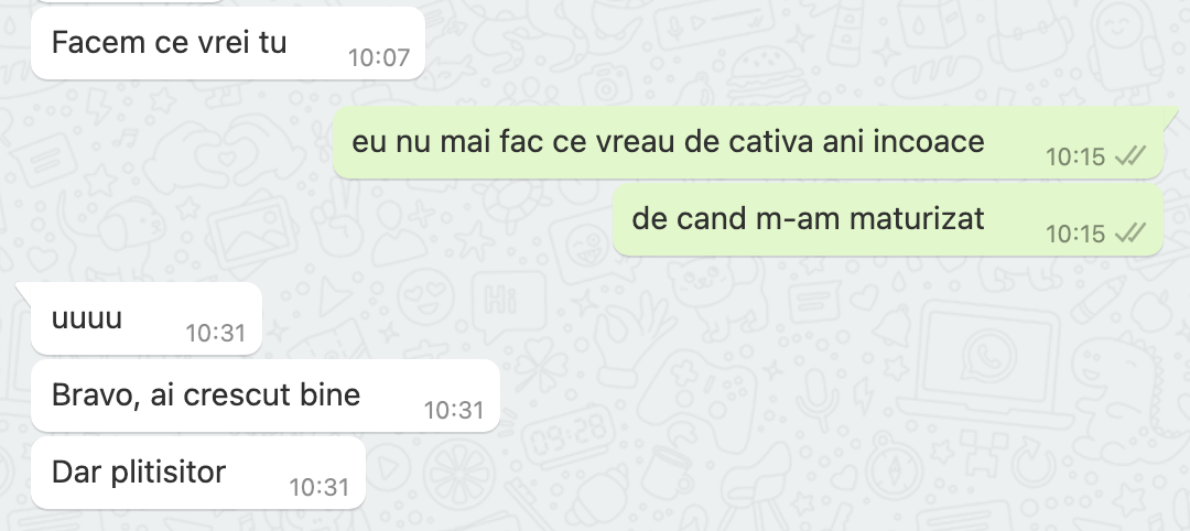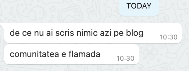 20:38 m-am trezit la 9 jumate si am plecat la 10. Si nu am avut timp de scris