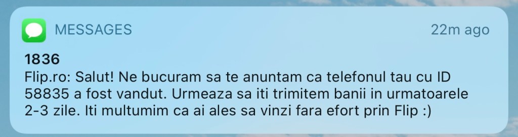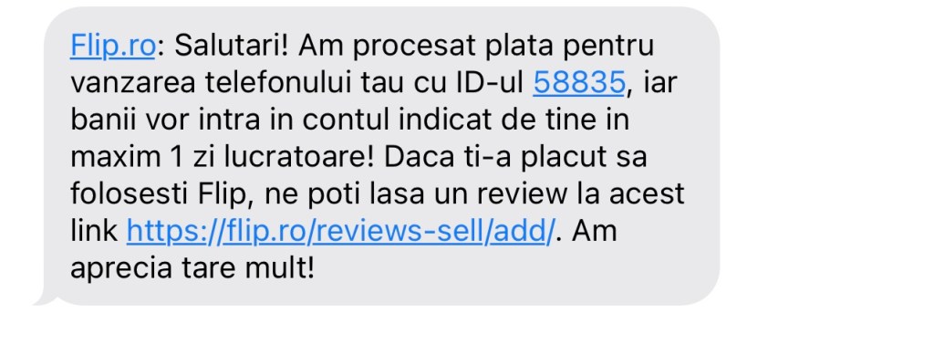 11:32 update flip.ro – am primit mesaj ca telefonul a ajuns la ei și ca îl vor inspecta